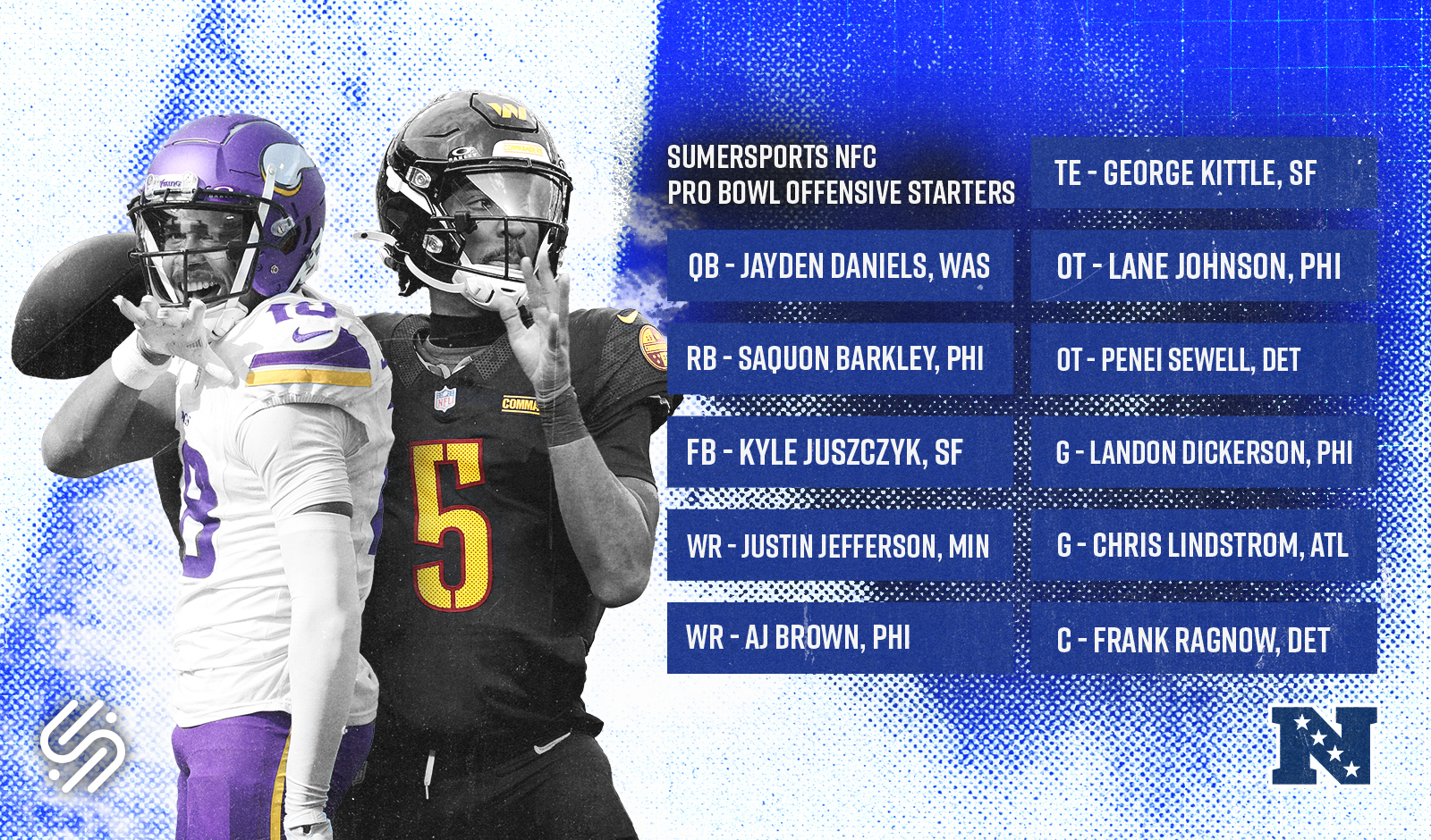 If you are upset with the results, chances are that each of our voters agree with you. There were multiple instances where votes for a player did not result in securing a roster spot or following the NFL’s voting meant a conference did not have a player at a specific position. Also, some players who initially received votes were not actually eligible. Through trials, tribulations, and one excel document locked away for the rest of time, here is the 2025 SumerSports Pro Bowl roster.