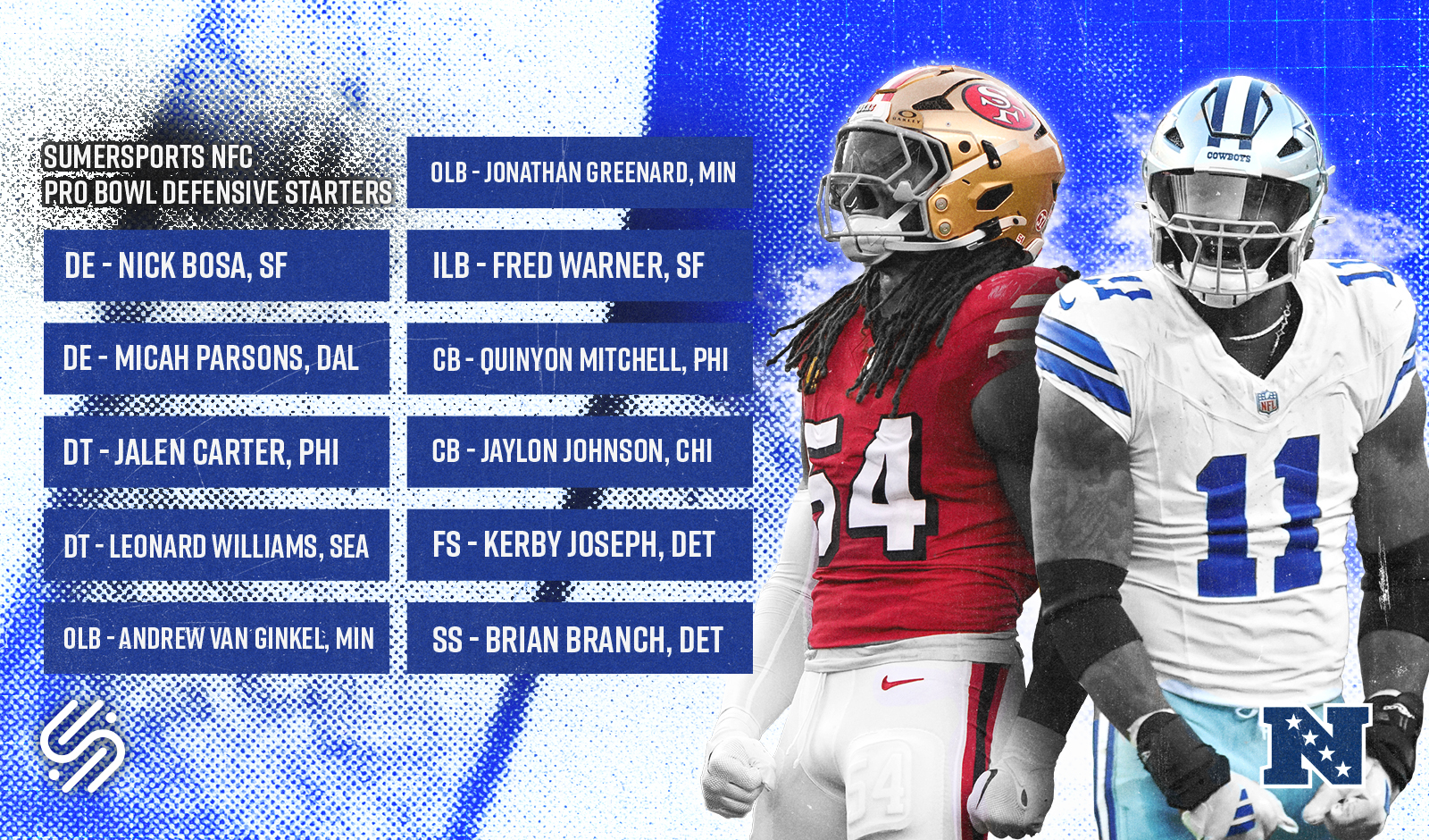Starters | Fred Warner, San Francisco 49ers | Daiyan Henley, Los Angeles Chargers |